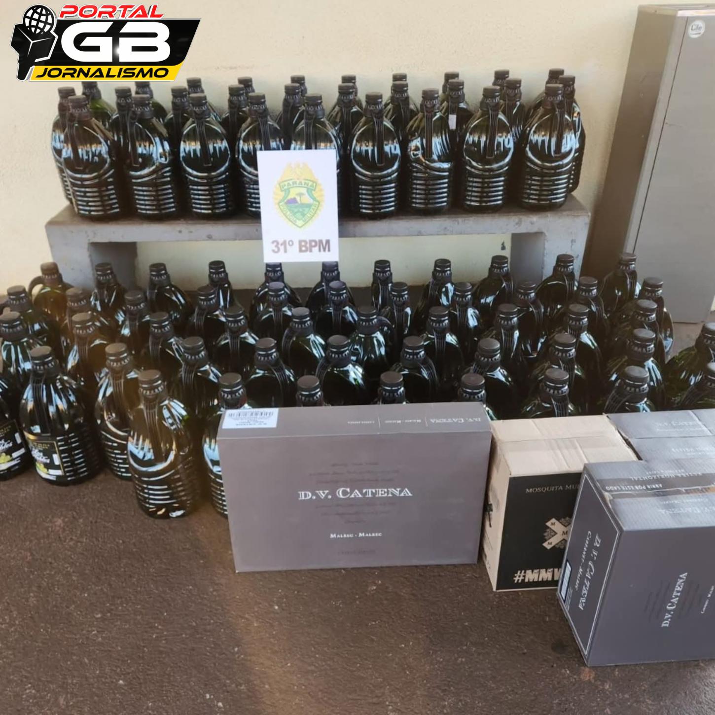 Ao ser abordado, o condutor informou que transportava azeite de oliva. em vistoria detalhada na sede do batalhão, os policiais constataram o transporte de 81 galões de 5 litros (totalizando 405 litros) de azeite sem selo da vigilância sanitária, além de 24 garrafas de vinho, todos de origem estrangeira e sem comprovação fiscal.