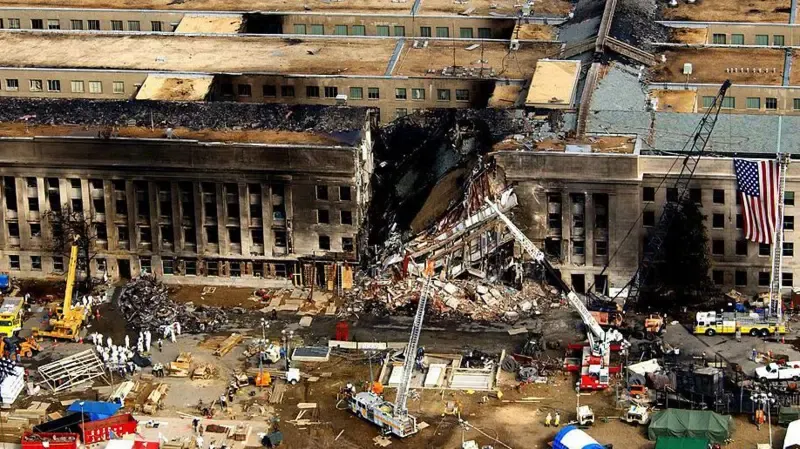 Às 09h37, o terceiro avião, um Boeing 757 fazendo o voo 77, de Washington a Los Angeles, atingiu uma das laterais do Pentágono.