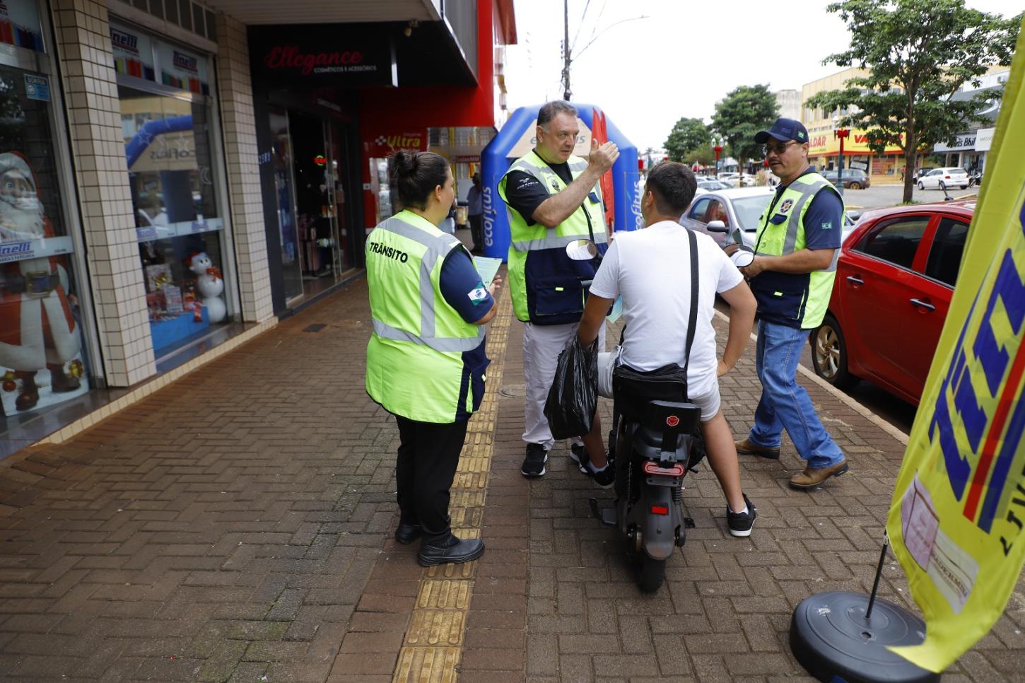 Durante a blitz, equipes da Secretaria de Segurança, lideradas pelo secretário Cristian Guilherme Goldoni, e do Departamento de Trânsito, representado pelo diretor Alessandro Vakiuti, abordaram condutores para esclarecer dúvidas, explicar as principais mudanças nas normas e reforçar atitudes seguras no uso de patinetes, bicicletas elétricas, ciclomotores e demais veículos autopropelidos. Guardas patrimoniais também participaram da ação, contribuindo na organização do fluxo e no apoio às abordagens, com caráter exclusivamente educativo e preventivo.