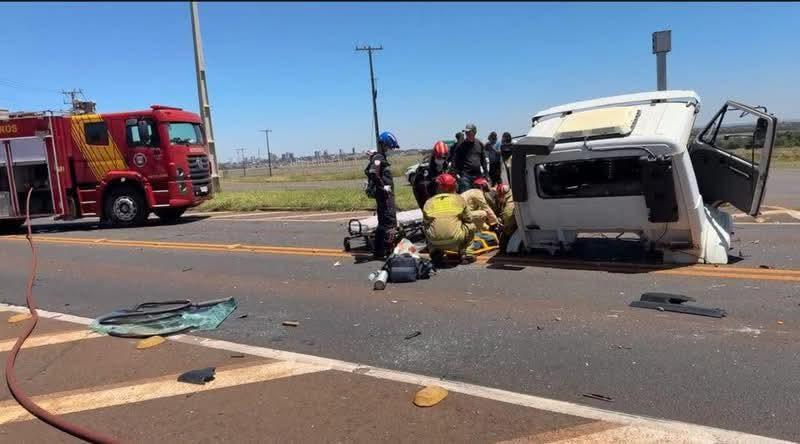Com o impacto, o caminhão se partiu ao meio e a cabine foi completamente arrancada. O motorista ficou ferido e foi socorrido pelo SAMU e pelo Corpo de Bombeiros, que estiveram no local realizando o atendimento.