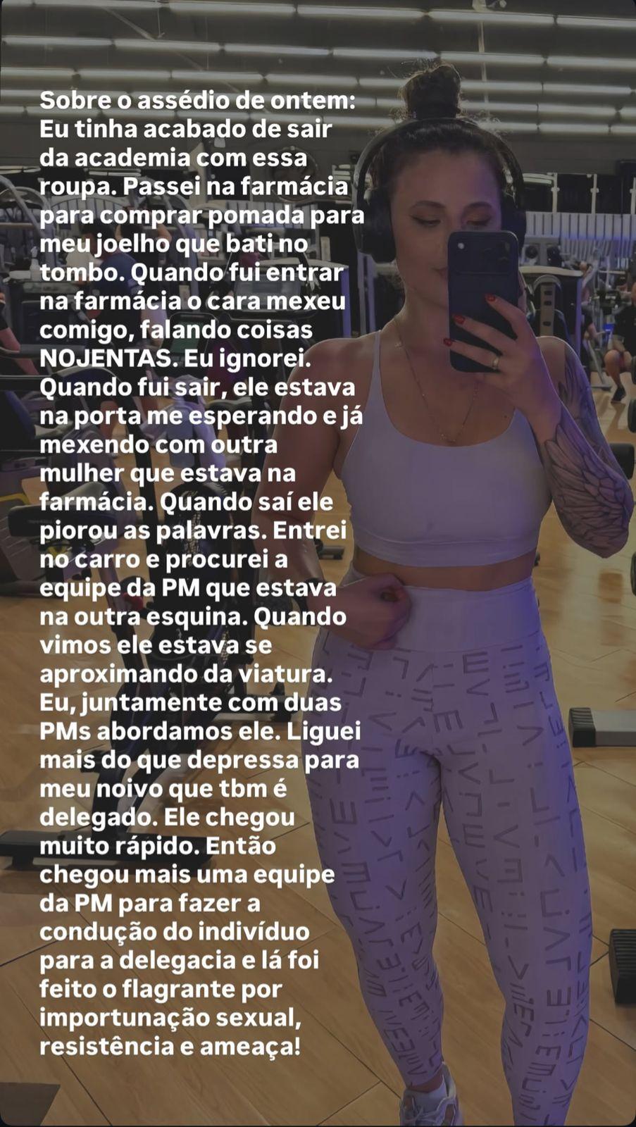 Segundo Zanatta, ela havia saído da academia e feito uma breve parada para comprar uma pomada após bater o joelho. Ao entrar no estabelecimento, foi abordada por um homem que fez comentários de cunho sexual.