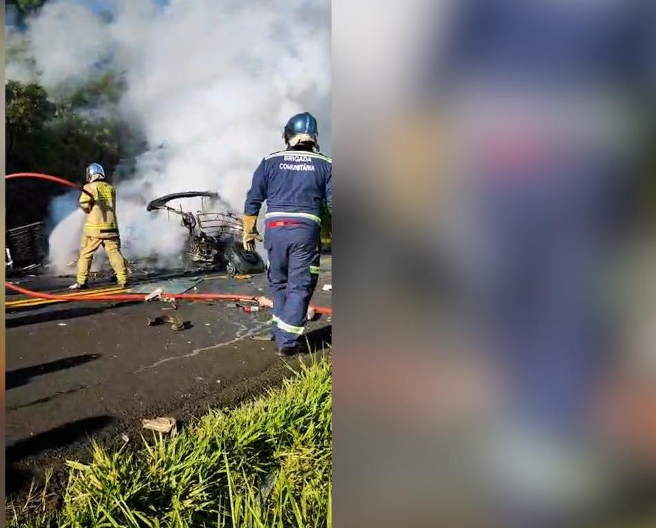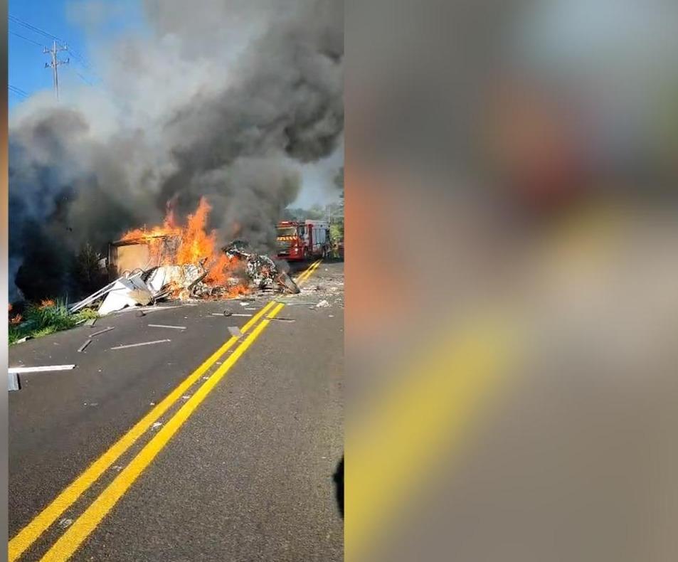 A batida envolveu um caminhão de pequeno porte, uma camionete Fiat Toro e um automóvel Fiat Pálio. O caminhão tombou e pegou fogo após a batida o passageiro, homem de 45 anos, morreu carbonizado. O motorista conseguiu escapar cortando o cinto de segurança com um canivete.