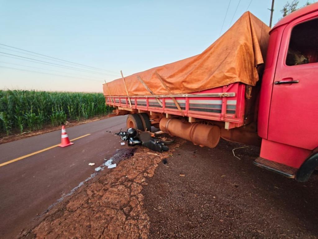 A colisão aconteceu na tarde de sexta-feira (20), quando os dois veículos seguiam em sentidos opostos pela via. Durante o trajeto, o caminhão realizou uma conversão à esquerda, momento em que ocorreu a batida transversal com a motocicleta.