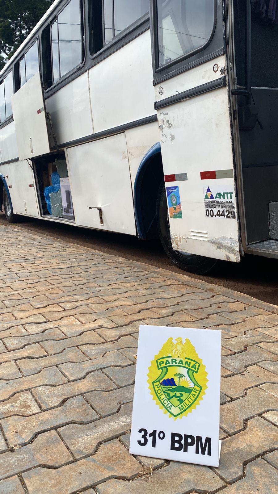 A equipe policial militar, após informações repassadas pelo Batalhão de Polícia Militar de Operações Aéreas (BPMOA), realizou a abordagem de um ônibus oriundo de Foz do Iguaçu, na marginal da BR-369, nas proximidades de Corbélia, diante de suspeita de transporte de ilícitos.